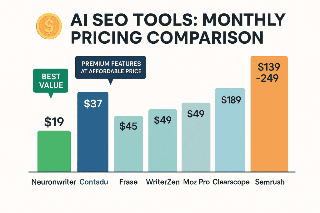 The most striking advantage of Neuronwriter and Contadu is their exceptional pricing. At $19 and $37 per month respectively, they offer feature sets that rival—and often surpass—tools costing five to ten times as much.