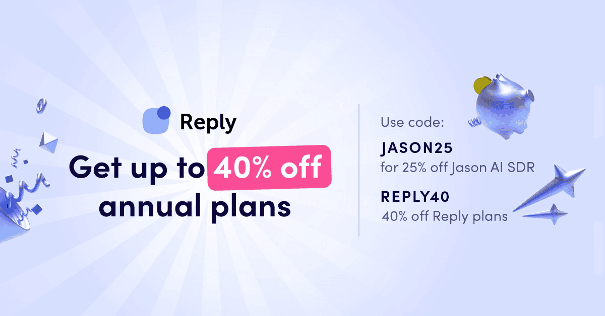 25% off annual Jason AI plans AND 40% off annual Reply plans (Email Volume and Multichannel)